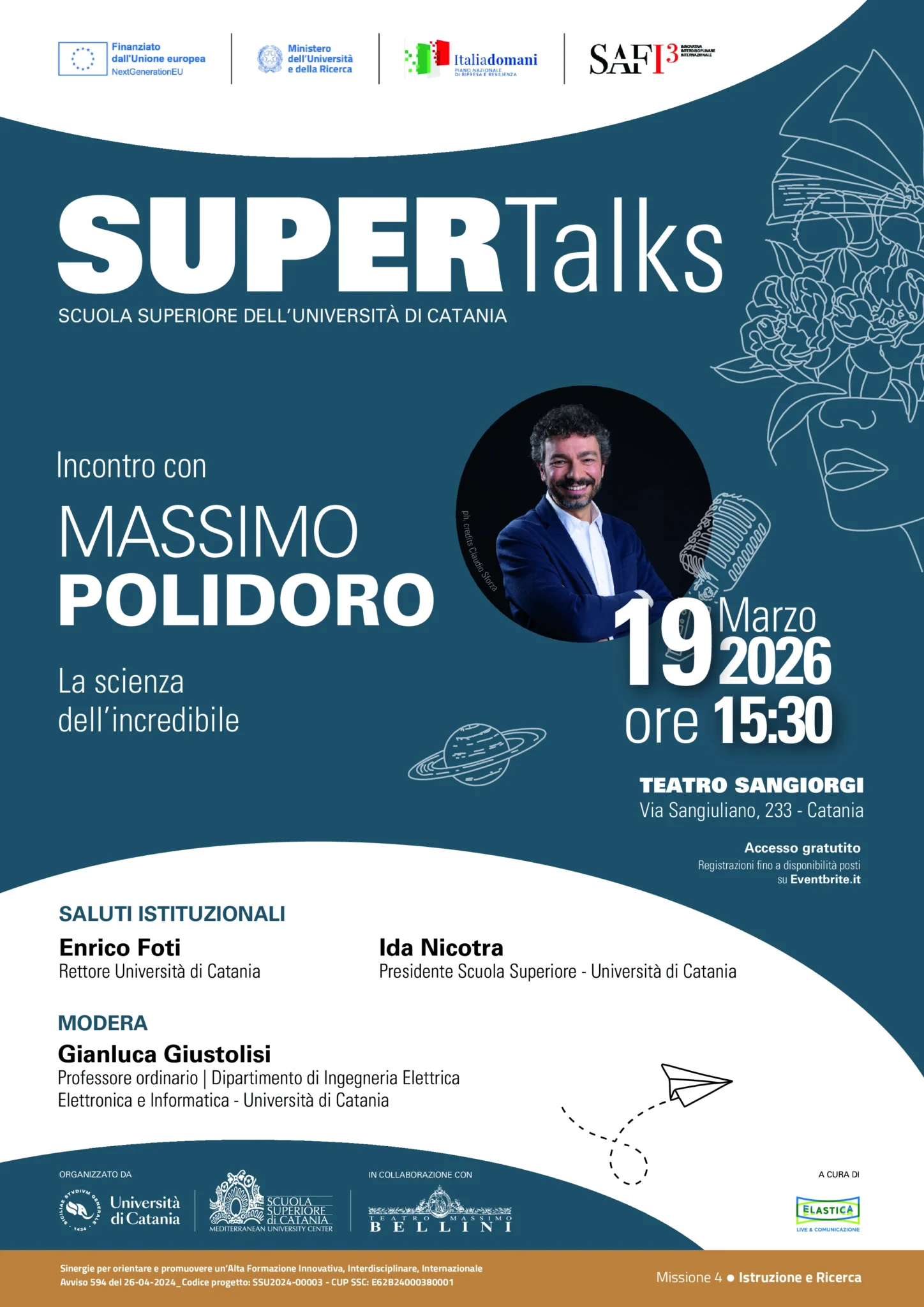 L’incontro con Massimo Polidoro si inserisce nel programma dei SuperTalks di Catania, rassegna dedicata alla divulgazione, all’innovazione e alla cultura contemporanea, con l’obiettivo di stimolare curiosità, confronto e spirito critico.